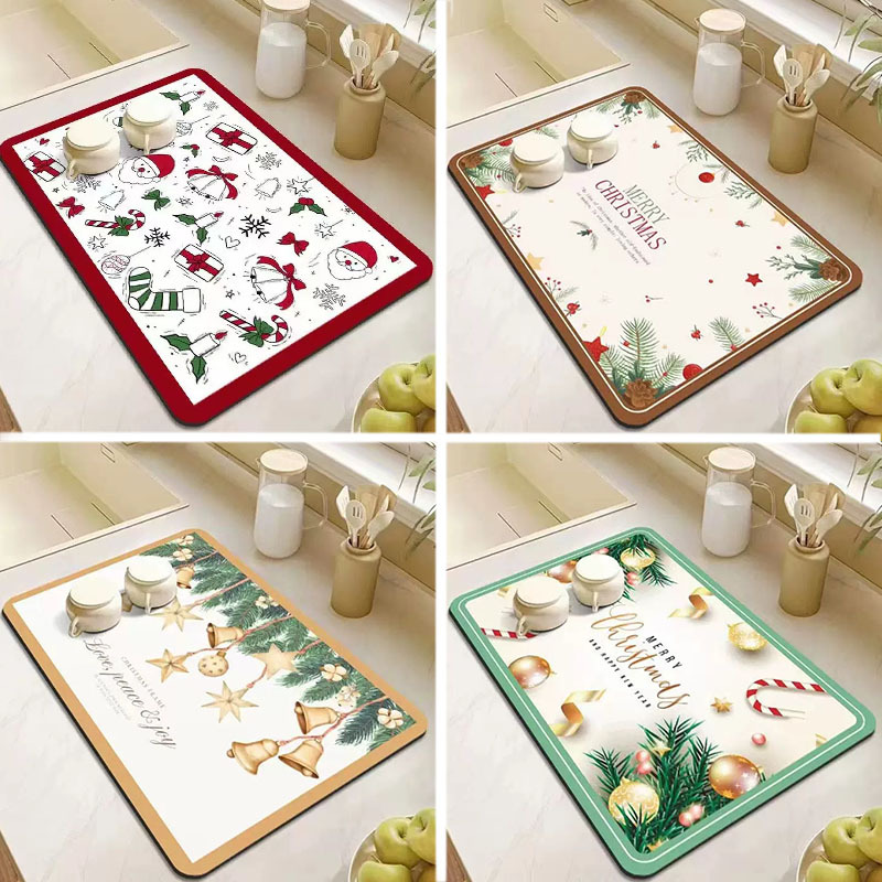 クリスマスシリーズキッチン洗面台家庭用水切りマット吸水クッション食器コップ無洗茶カウンターマット