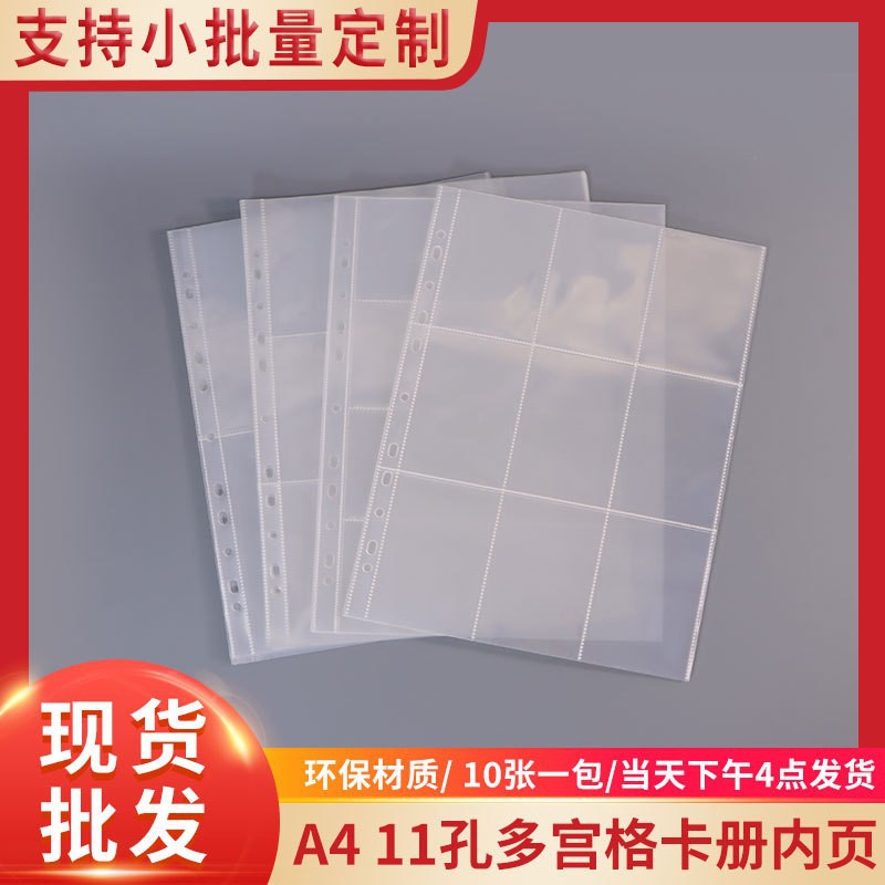 工場直販 11穴マルチグリッドA4カードブック、ゲームカード、ポラロイド、レシート収納用PPルーズリーフリフィル