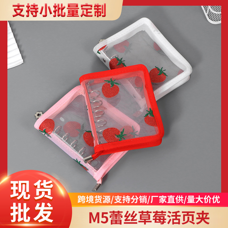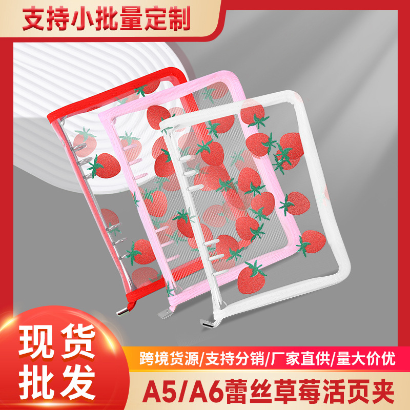 Ins小清新a5 6少女心バインダーノートケースレースいちごpvcジッパー手帳バインダークリップ