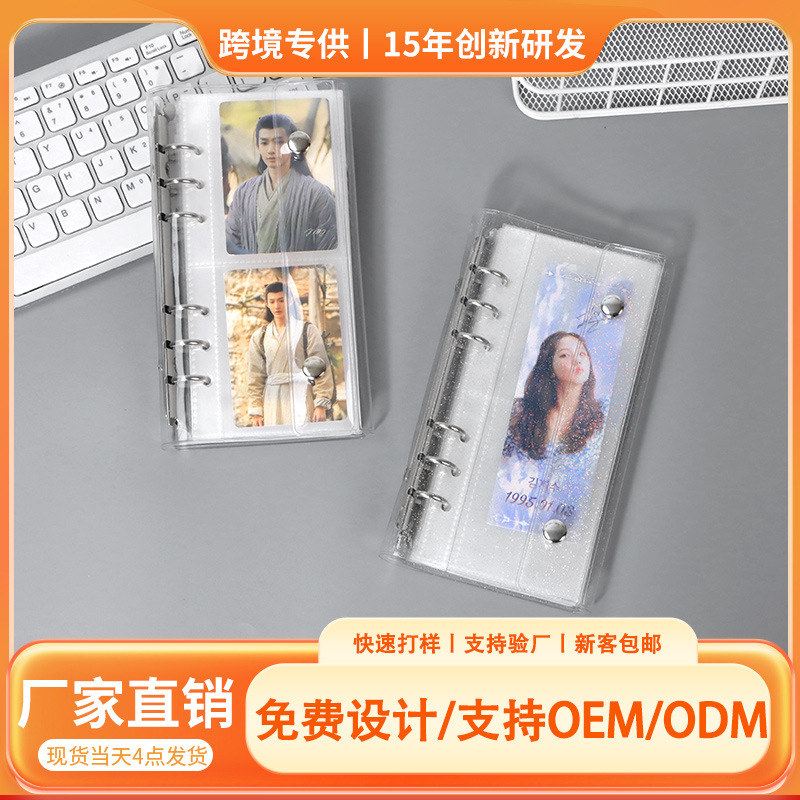 工場でカスタマイズされた透明なグリッターフォトアルバム、韓国セレブのフォトカード収納アルバム、ルーズリーフブック、カスタマイズされたPVCソフトシェル