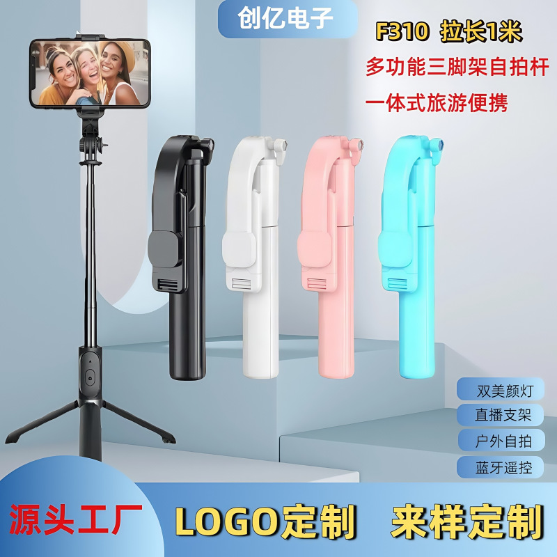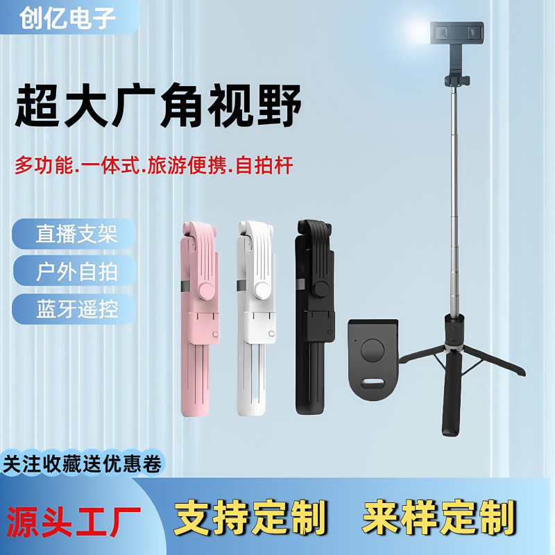 新型-スマホ用Bluetooth自撮り棒三脚一体型スタンド、補助光付き、ライブ配信・写真撮影用、卸売