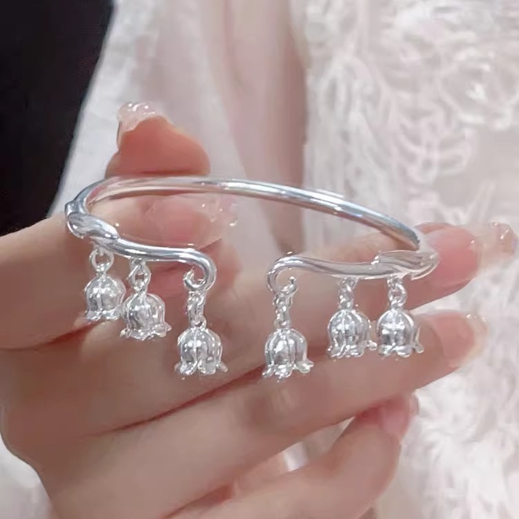 すずらんの銀の腕輪の女性は銀をめっきして中実の口の腕輪の若い金の国の潮の風のブレスレットは彼女の工場に卸売りを送ります。