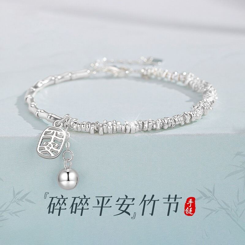 レトロなハイエンドブロークンシルバー竹ブレスレット女性用、軽くて豪華なニッチで絶妙な女性用、2025年の新しい中国のバレンタインデーのガールフレンドへのギフト