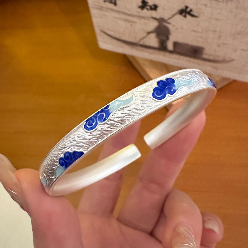 2025年に新型爆発したレトロなブレスレットエナメル彩画青祥雲女新中国式ファッション中実開口手環