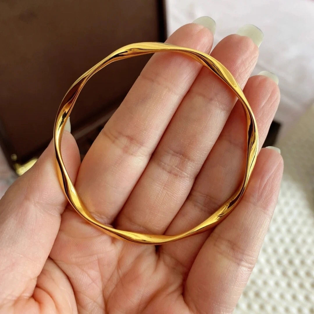 江銘は口を閉じてモビウスの環の金メッキの腕輪の若い金のきわめて細い手の輪のファッションに合わせて不規則な線を使います。