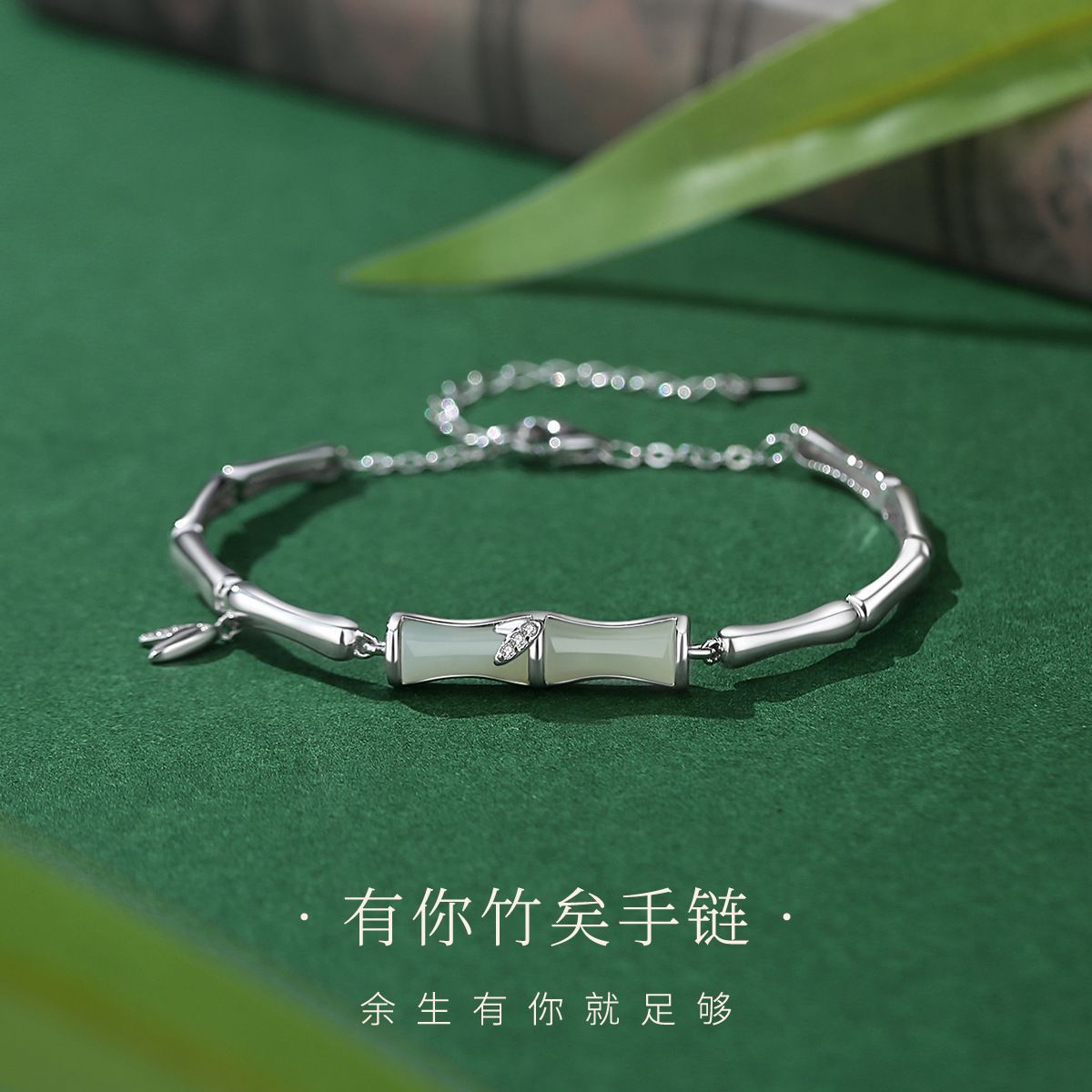 銀メッキ和田玉竹節ブレスレット女軽豪華小衆国風竹銀ブレスレット誕生日プレゼントは彼女に卸売りします。