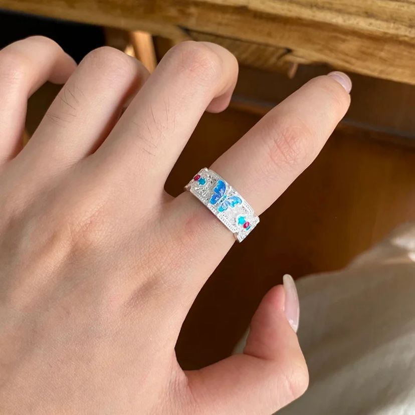 2025 新中国風エナメル蝶リング女性のためのソリッドオープン般若心経レトロブレスレット中国風ファッション