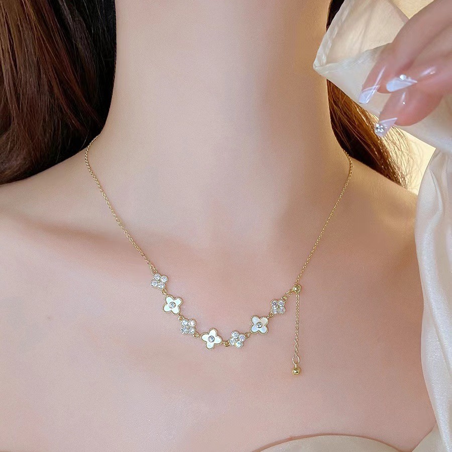 幸運草のネックレスの女子学生は精巧で軽い豪華な幸運草の四つ葉の貝の母の鎖のネットの赤いinsジルコンの首の鎖