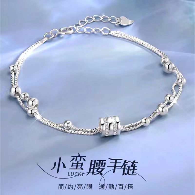 二重にダイヤモンドを入れた小さい腰のブレスレットの女子学生の銀の玉の装飾のシンプルな森系insの大衆の設計の新型