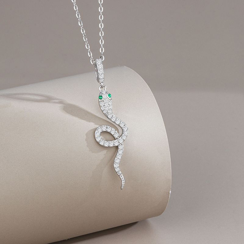 S925純銀はダイヤモンドを入れて曲がった蛇の形のペンダントの女性のジルコンのネックレスの女性の首の鎖の蛇の年の生肖の個性の本命の贈り物を入れます。