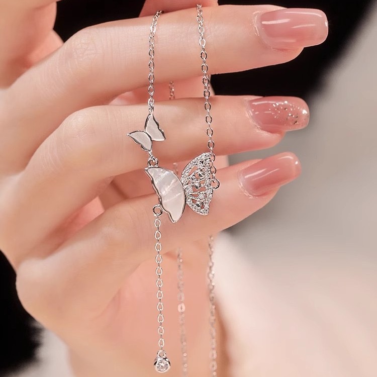 光影の蝶のネックレスの女性の純銀の蝶結びの鎖は甘くてシンプルです。