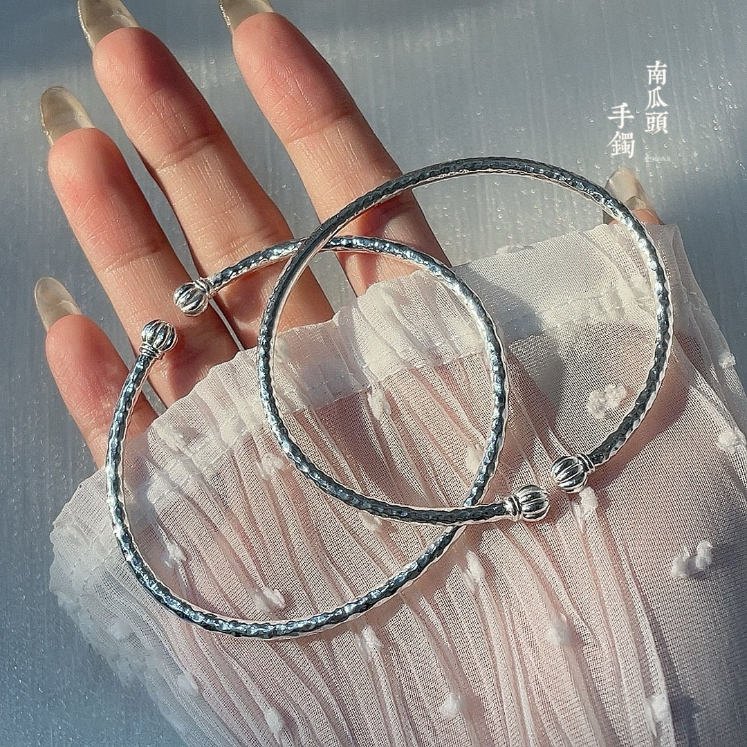 レトロな銀の巻き風のカボチャの頭の腕輪の女性の新しい中国式のハンマーの紋様の丸い腕輪の古い法の手環は彼女にプレゼントを送ります。