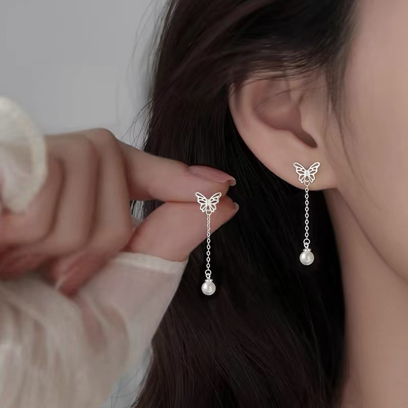 透かし彫りの蝶の流蘇のピアスの女性の高級な設計の小さい大衆の軽豪華な新しい中国式の真珠のイヤリングの新型の甘い正月