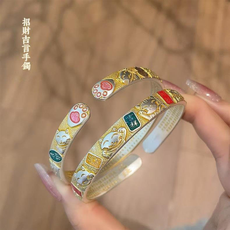 2025新型のブレスレットの女性の国の風は金のエナメルの招き猫の小さい大衆を描き出します。