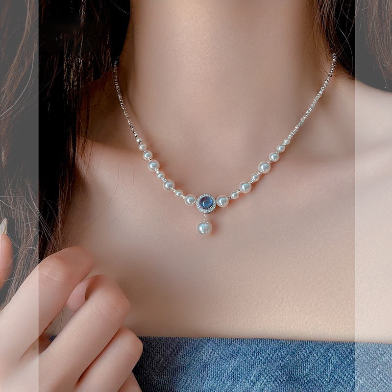 海藍宝砕銀真珠ネックレス女2024新型爆金ファッション鎖骨鎖軽贅沢小衆高級首鎖