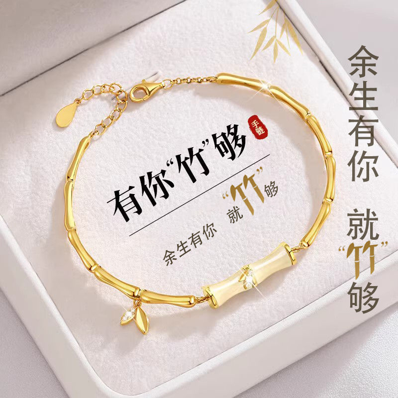 竹節平安鎖ブレスレット女中実ブレスレットins小衆デザイン軽贅沢金は彼女に520誕生日プレゼントを贈る