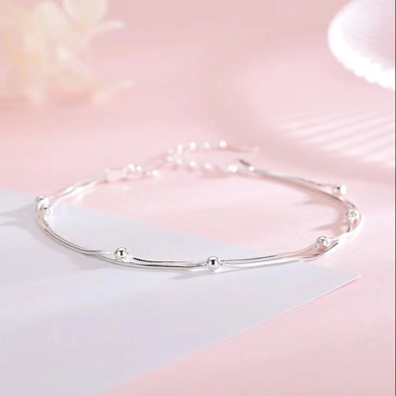 江銘の二重の玉の小さい珠の細い鎖の文芸の小さい清新な日韓版の学生は簡単でファッション的な蛇の骨のチェーンの銀の手をめっきします。