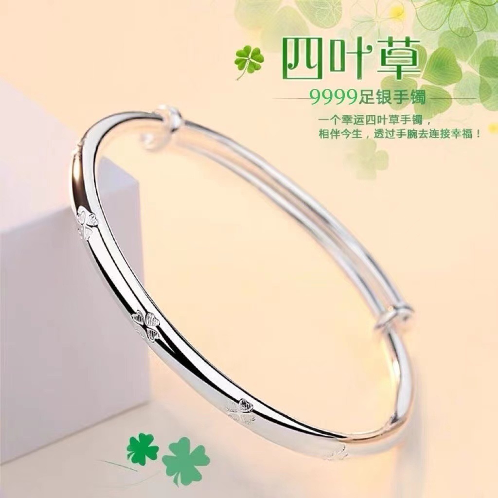 江銘韓国版新型シンプル幸運四葉草銀メッキブレスレット女性の若年ブレスレット