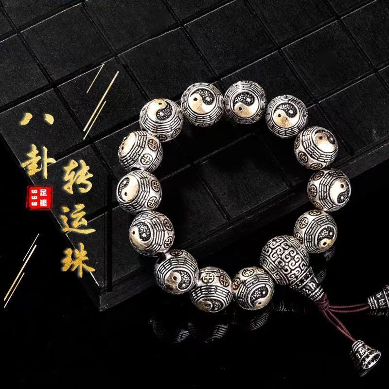 江銘太極八卦転運珠手串男金は古いレトロな中国風泰銀のブレスレットを作ります。