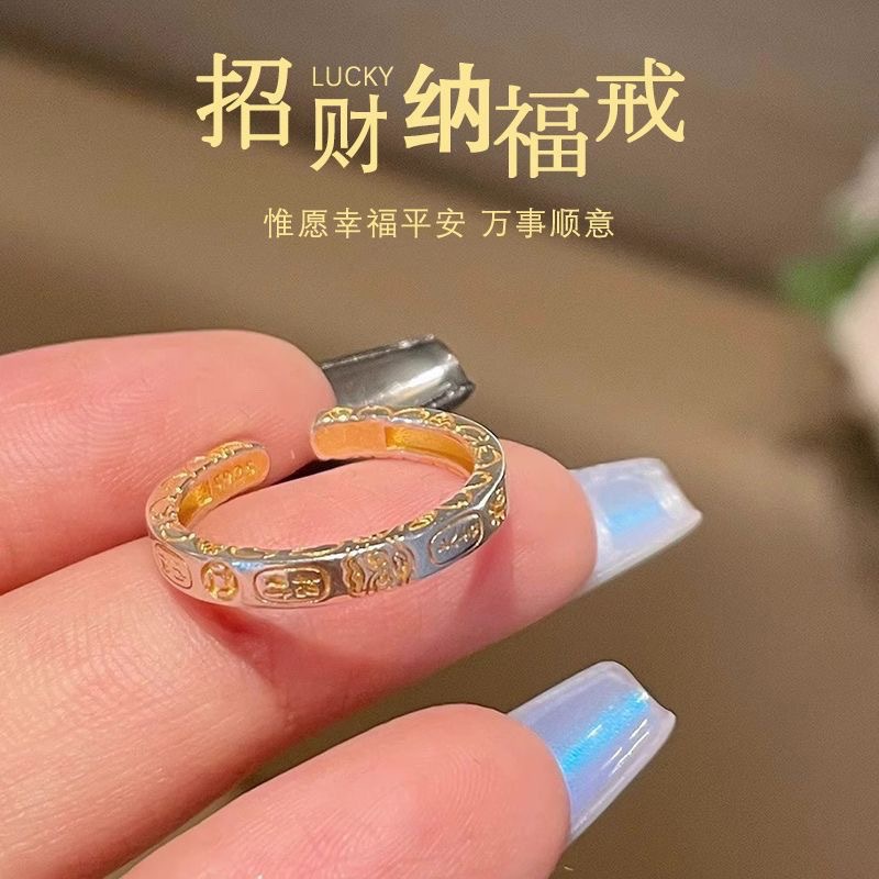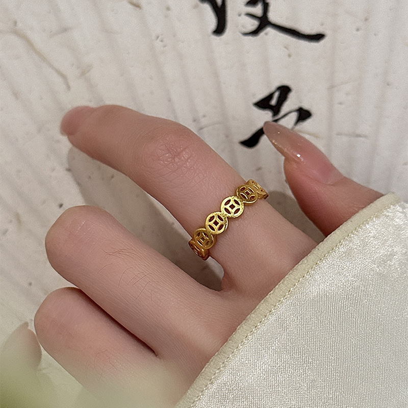 新しい中国風の幸運の銅コインオープンリング、国民的トレンド、レトロファッション、人差し指リング、ニッチトレンド、軽い高級ハンドジュエリー卸売