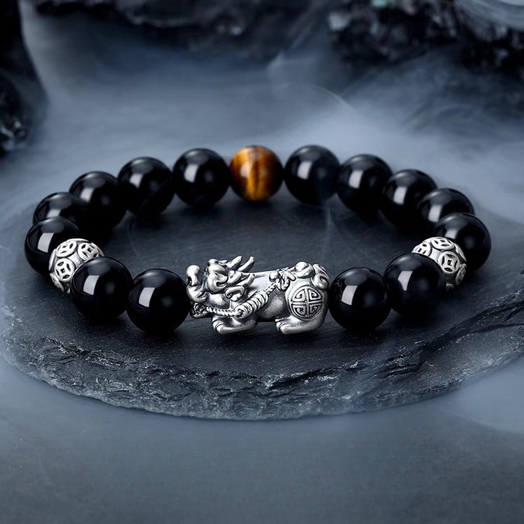 レトロな中国風の幸運貔貅黒曜石ブレスレットメンズブレスレットシンプルでハイエンドのボーイフレンドの誕生日ギフト卸売
