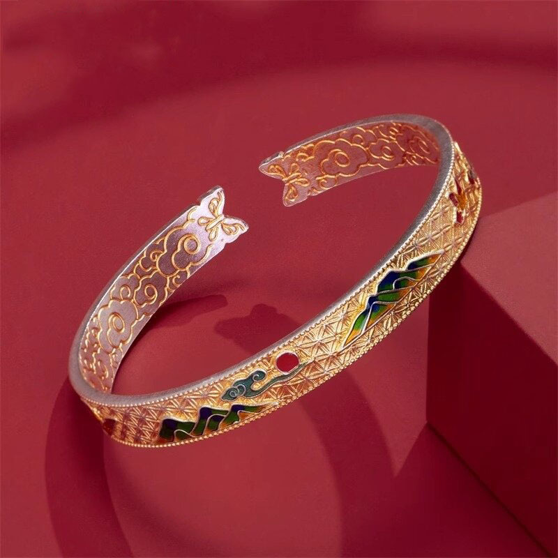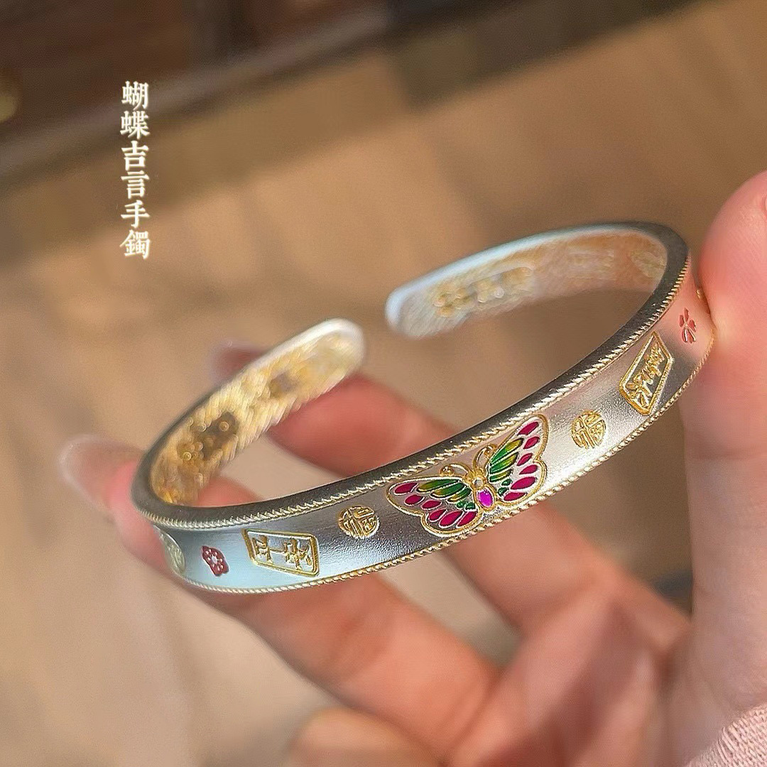 エナメルゴールド蝶吉言ブレスレット女性のレトロブレスレットオープン新中国風のハイエンドソリッドブレスレットギフト