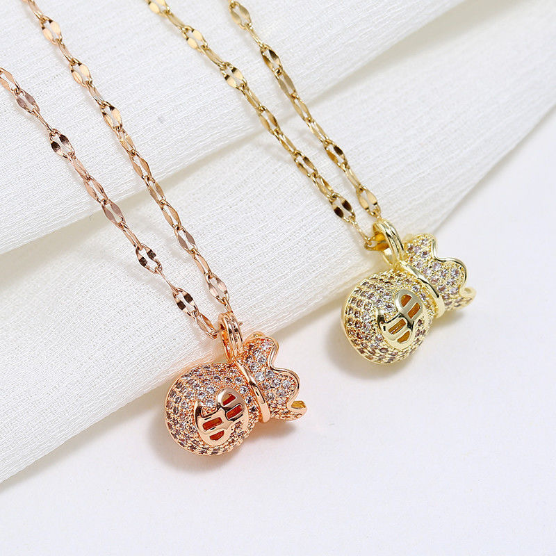 江銘のお金の袋のペンダントの鎖の女性の唇の鎖のバラの金のネックレスの小さい大衆の設計感の高級な潮の震える音の速い手
