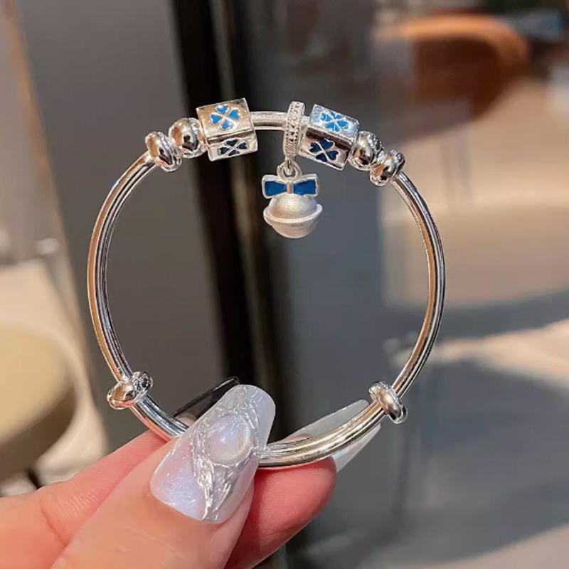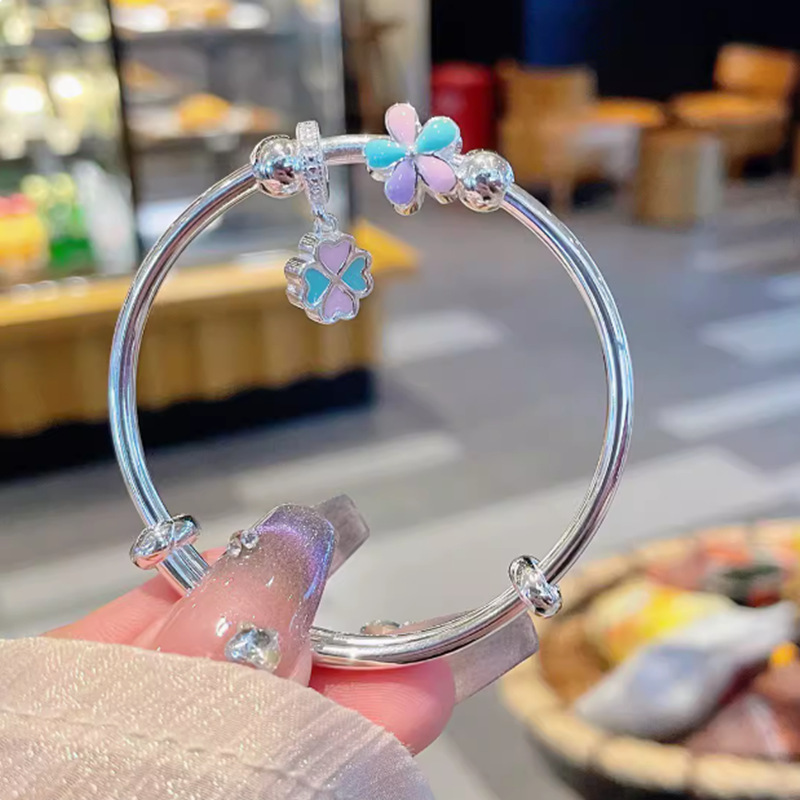 2025 新しいかわいい逃亡王女ブレスレットブルーフラワーベル四つ葉のクローバーブレスレットプッシュプル調節可能な子供用モデル