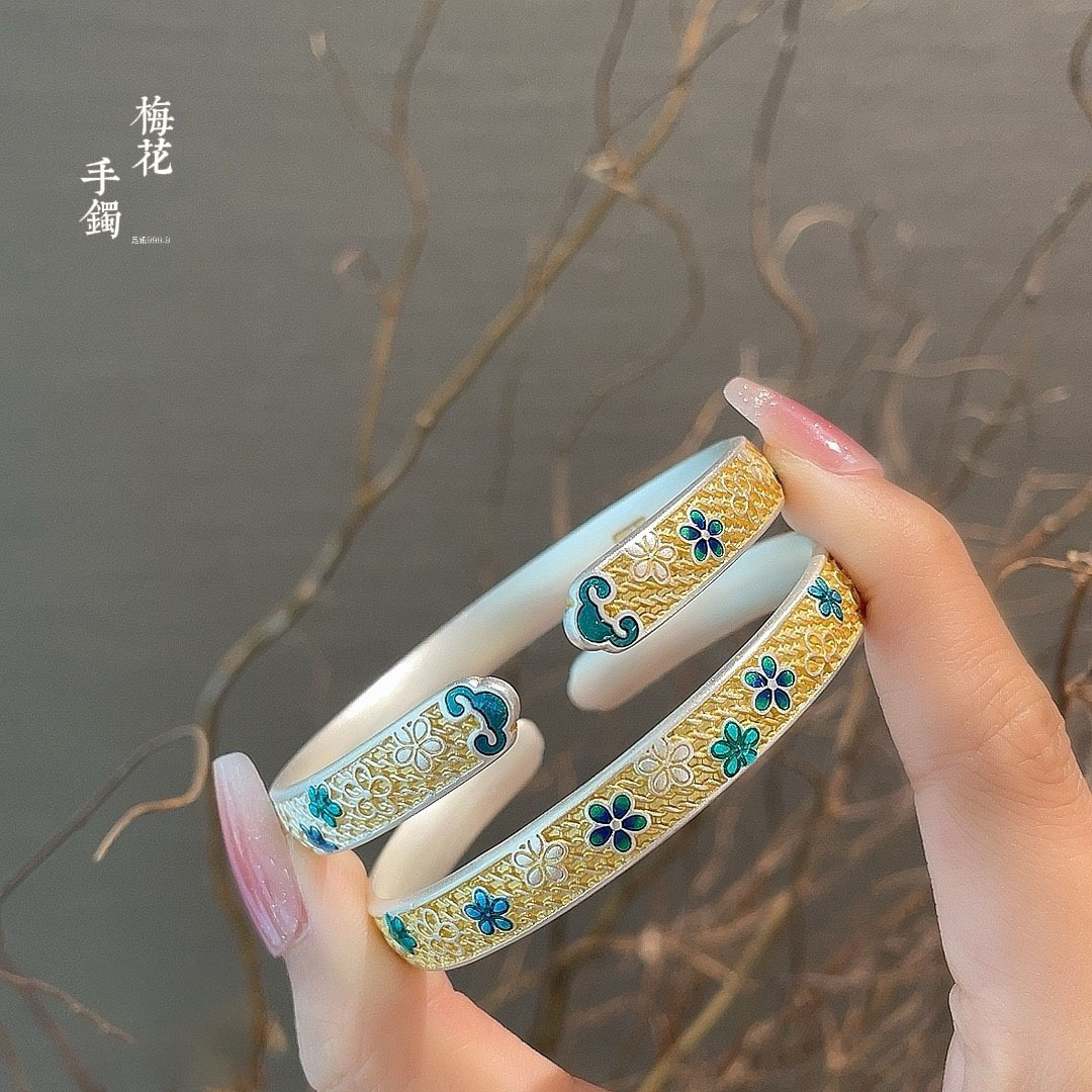 2025 新しいハイエンドゴールドエナメル梅の花ブレスレット女性のための新しい中国風のブレスレットオープンガールフレンドギフト