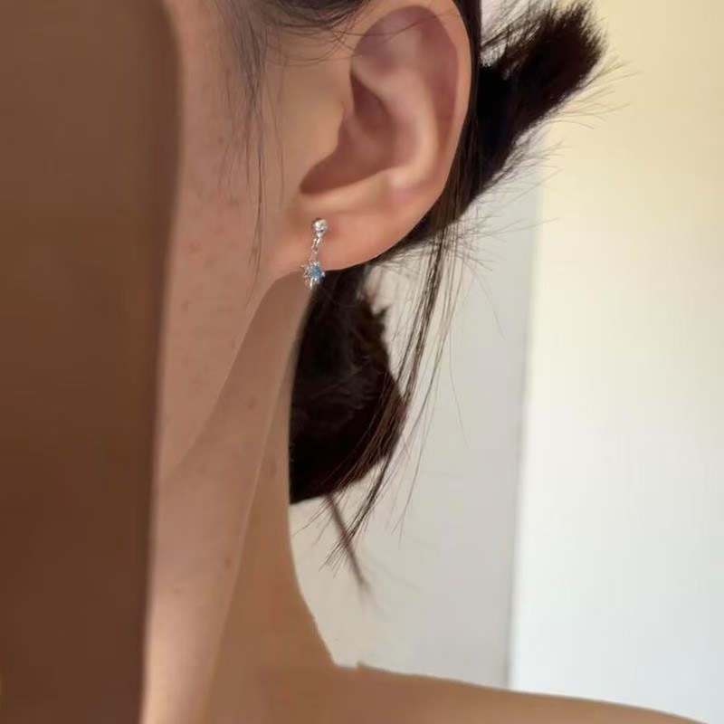 清冷感の青い星のピアスの女性は簡単です。