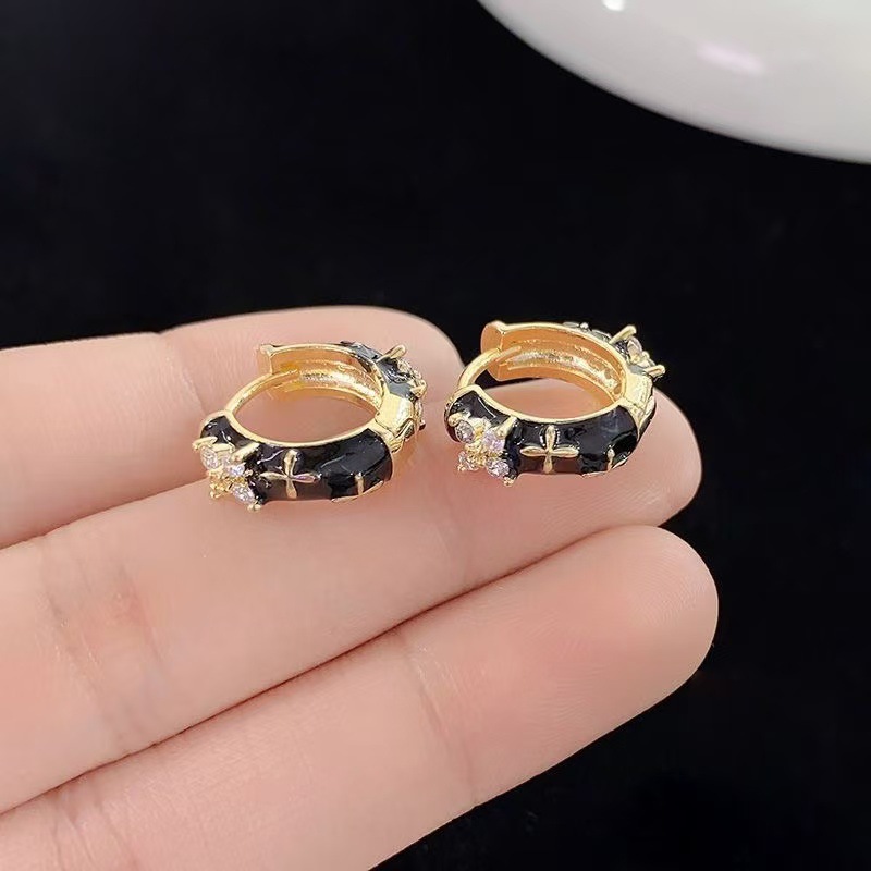 黒いエナメルのイヤリングは韓国系の高級感があります。