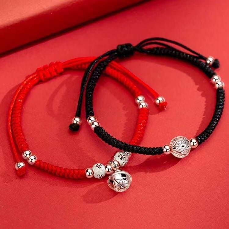 江銘の新型の同心の鈴のカップルの手の縄の学生の対の手作業は本命の年の赤い縄を編んで銀のブレスレットをめっきします。