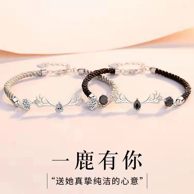 江銘の新しい道の1鹿はあなたのカップルのブレスレットの1対の学生insの大衆の設計が手綱の男女を編みます。