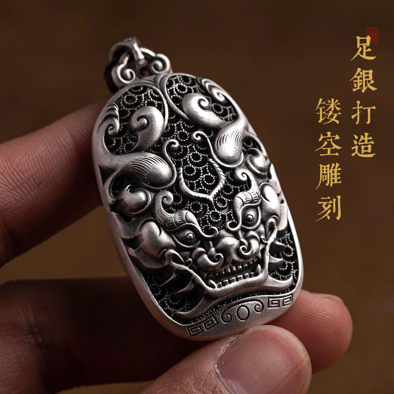江銘の透かし彫りの財源のピシュピストのペンダントは銀のネックレスをめっきします。