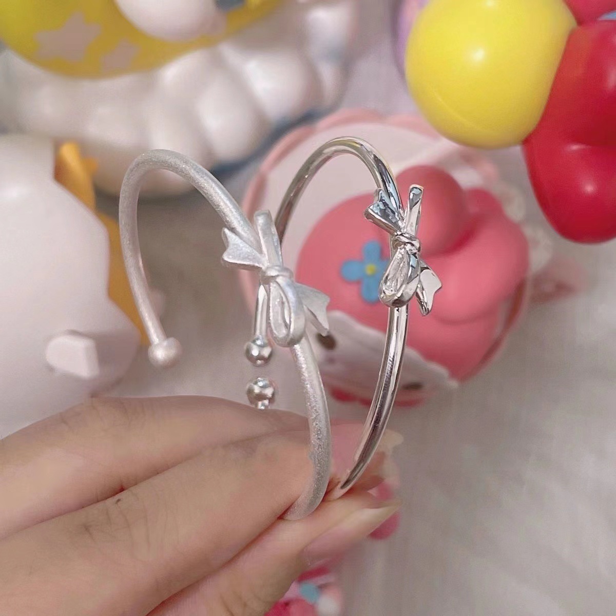 江銘古法のつや消しの蝶結びの開口部の手環の女子のアクセサリのinsの小さい大衆の風の百合の銀の腕輪の女性の金をめっきします。