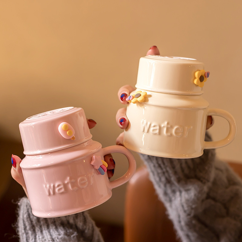 女の子向けの大容量セラミックカップ、蓋とスプーン付きの見栄えの良いケトルマグ、オフィスホーム、Zhao Zhiwu