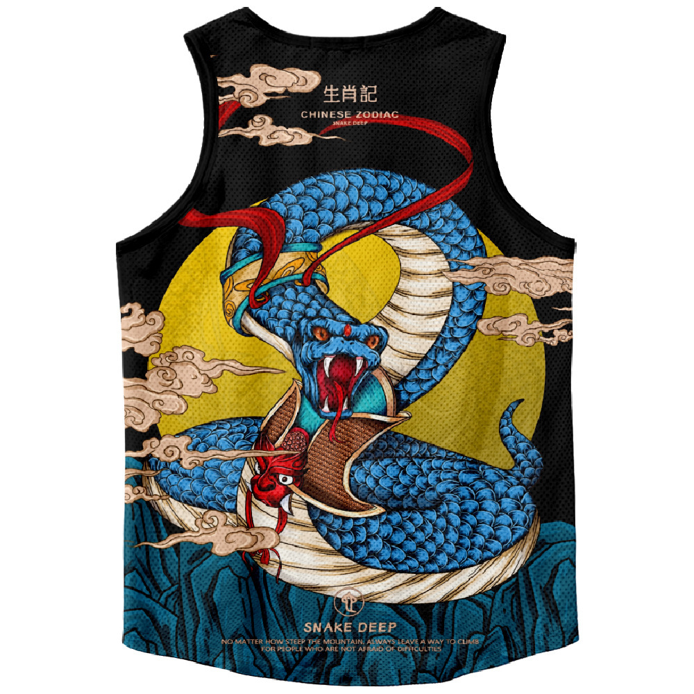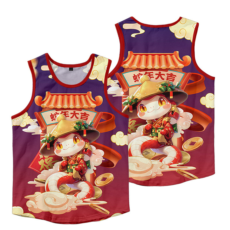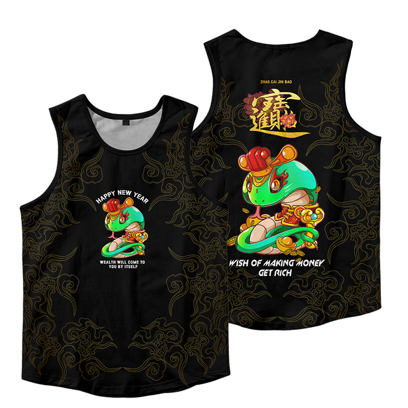 2024対外貿易独立駅国潮男装十二生肖蛇年デジタルプリントレジャーゆるい運動黒ベスト