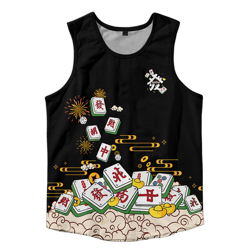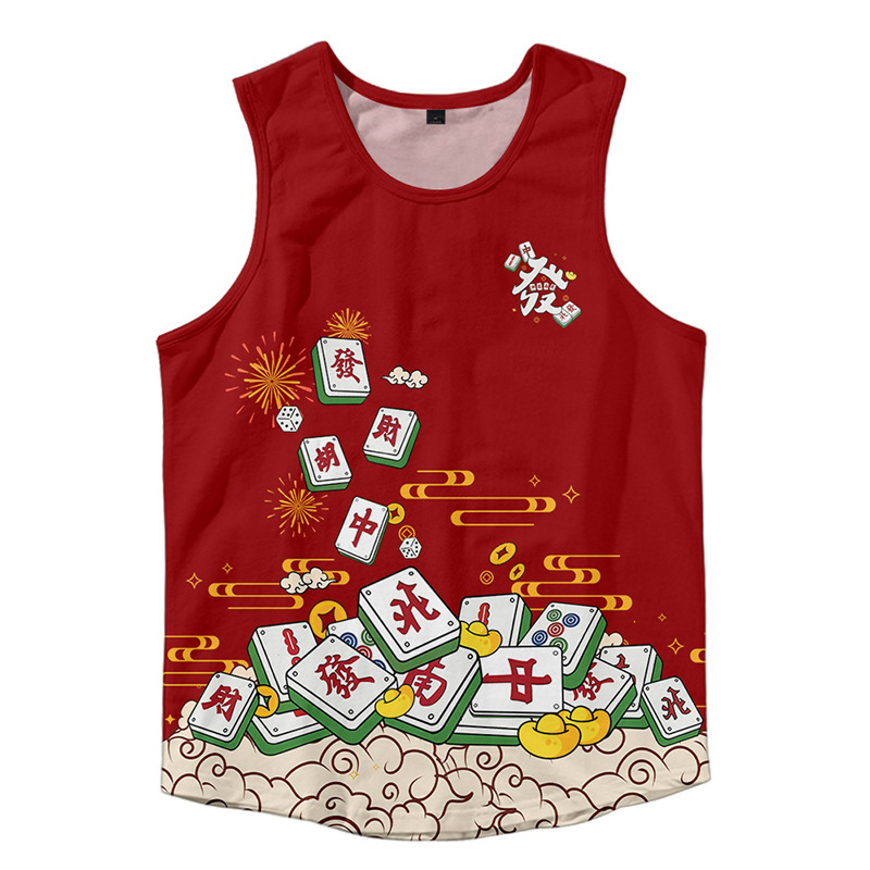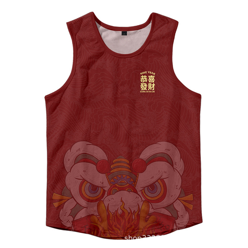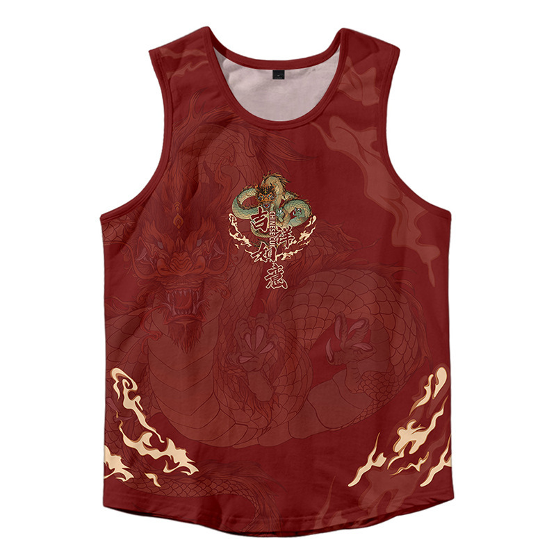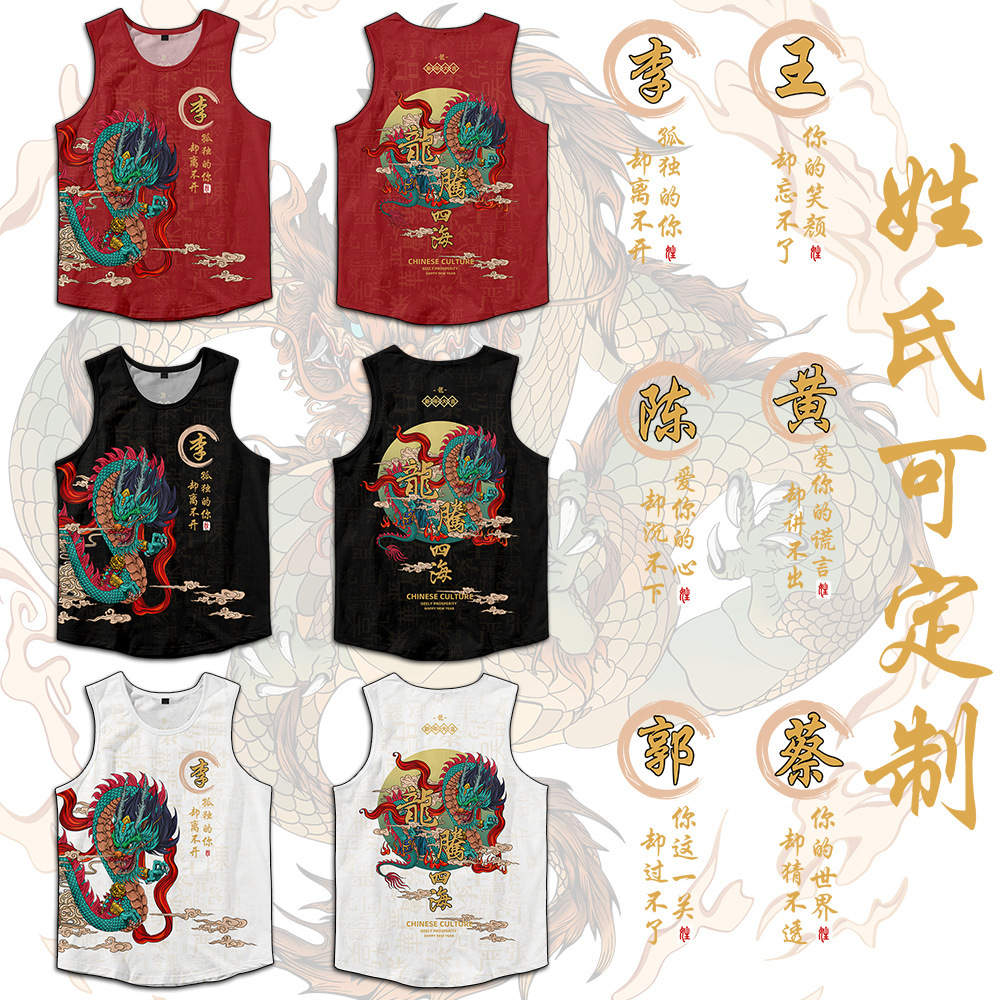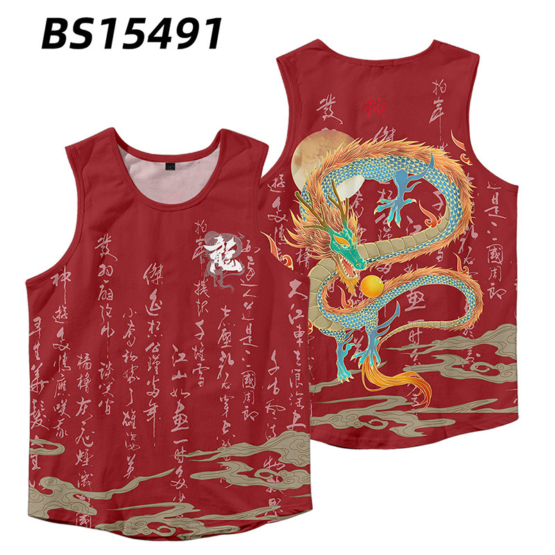 2024対外貿易アマゾン男装龍年龍行大運3dデジタルプリントレジャーゆるい運動ベスト代発