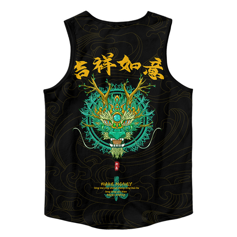 龍年国潮本命年龍騰四海夏ベスト老漢シャツ男ゆるい中国風潮流百合速乾