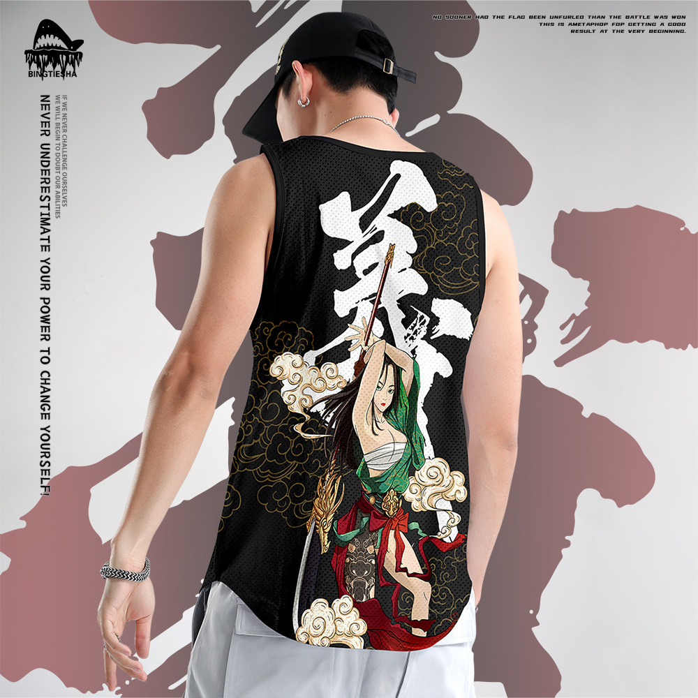 2020新型ベスト男性トレンド個性ノースリーブtシャツ関雲長ベスト外着スポーツベストメーカー製