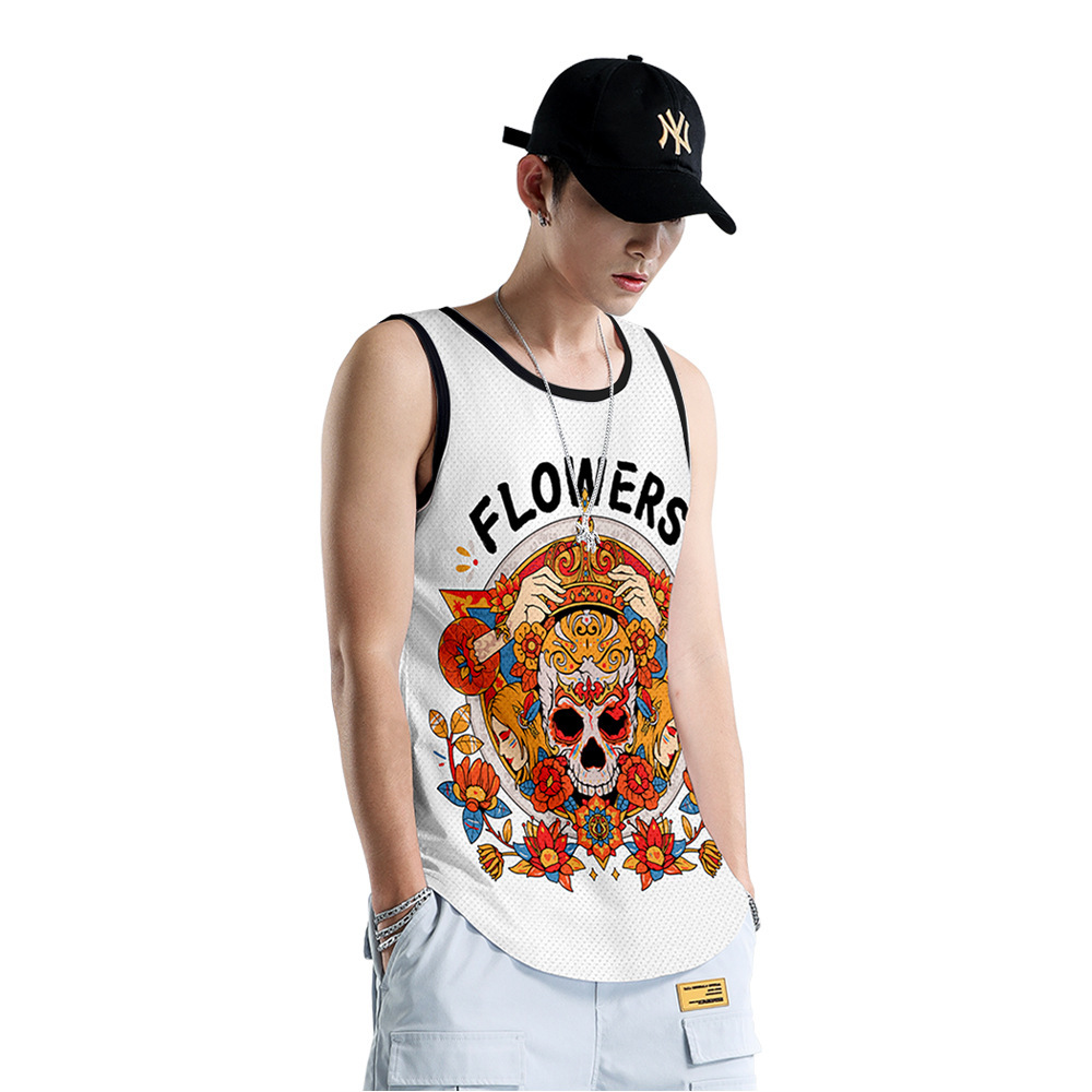 アマゾンの花のスカルのベストの男性のファッションの個性の袖なしの底のtシャツの外はフィットネスのスポーツの夏のベストを着ます。