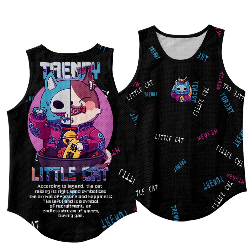 アマゾン招き猫ベスト男性ファッション個性ノースリーブtシャツ外着フィットネススポーツメッシュ夏