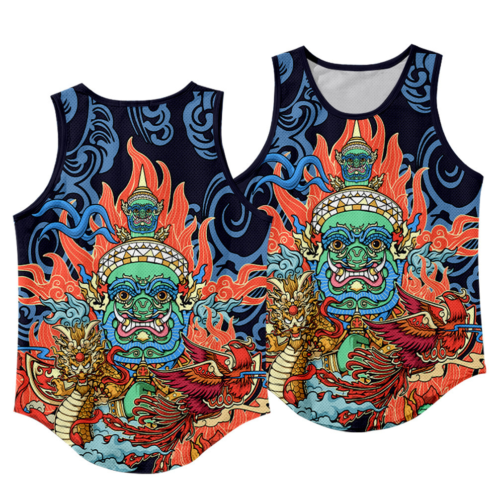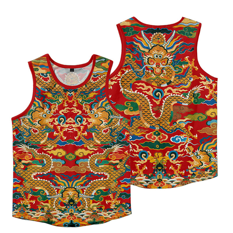 龍年国潮本命年夏龍衿覚醒獅子ベスト老漢シャツ男ゆるい中国風潮流通気百合