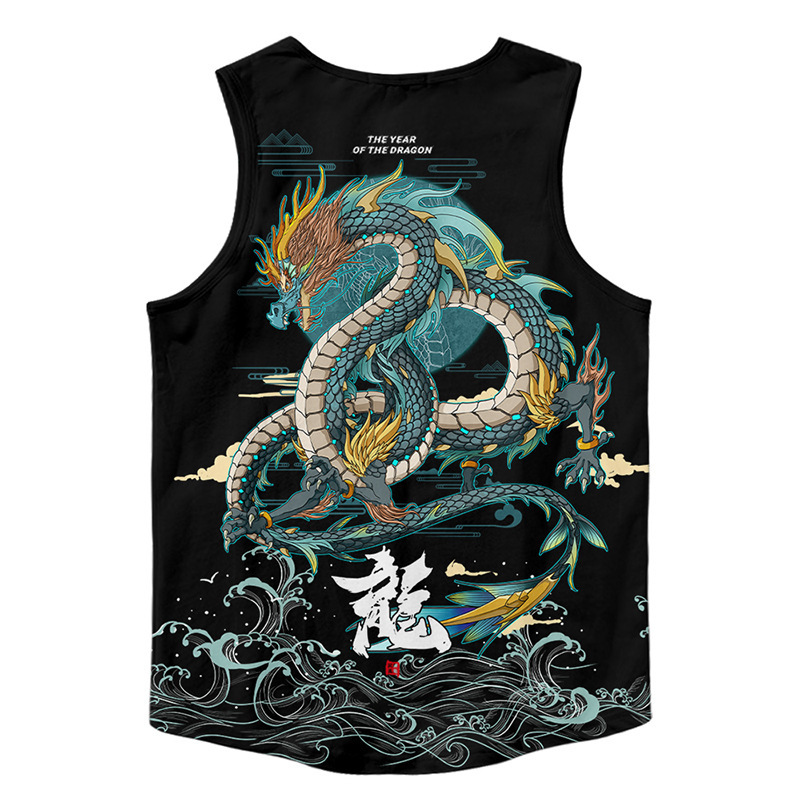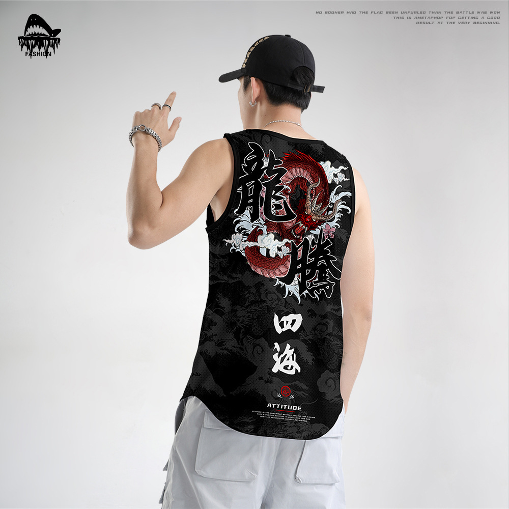 2020新型ベスト男性トレンド個性ノースリーブtシャツベスト外着スポーツベスト龍騰四海プリント