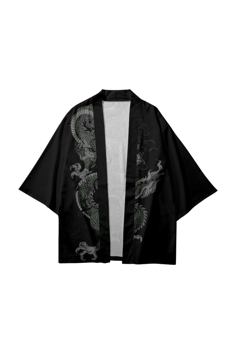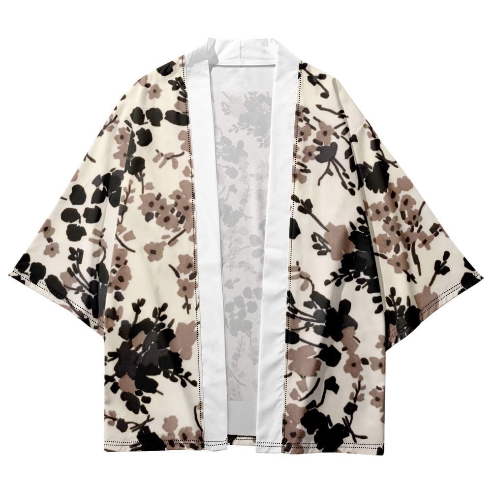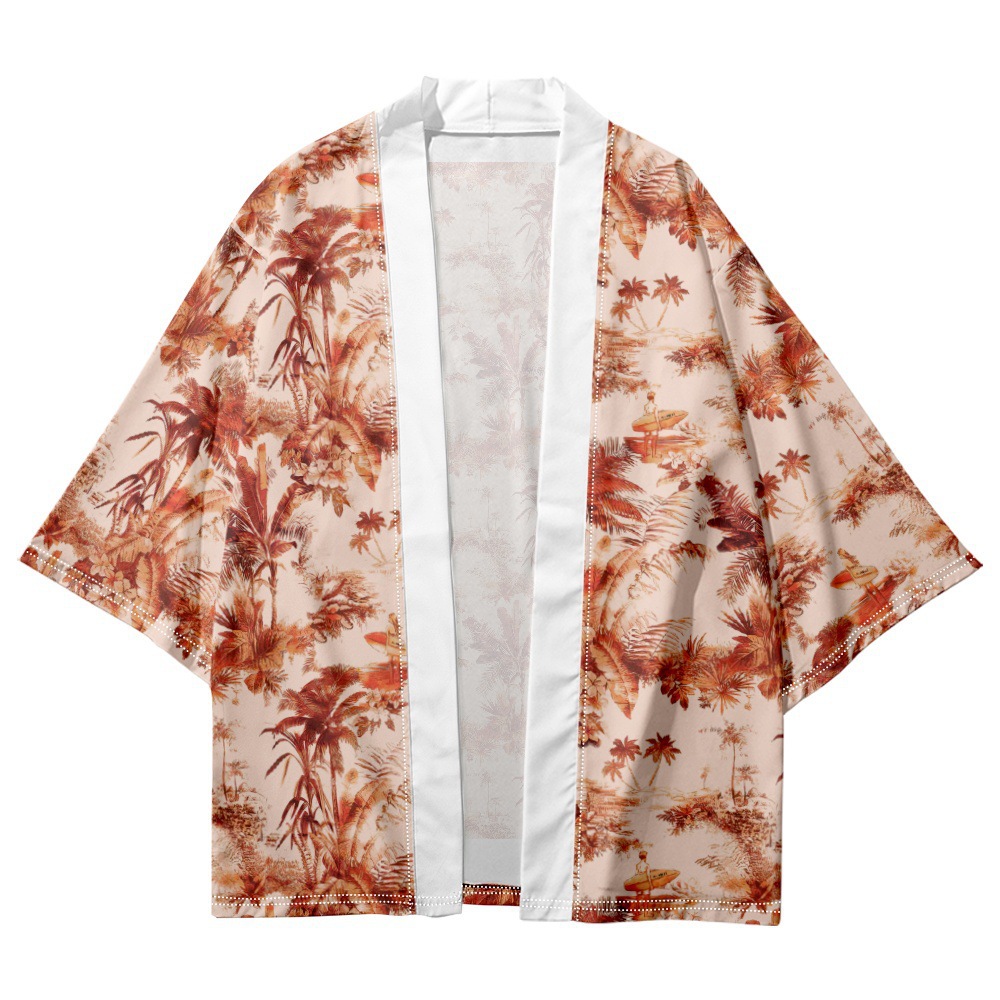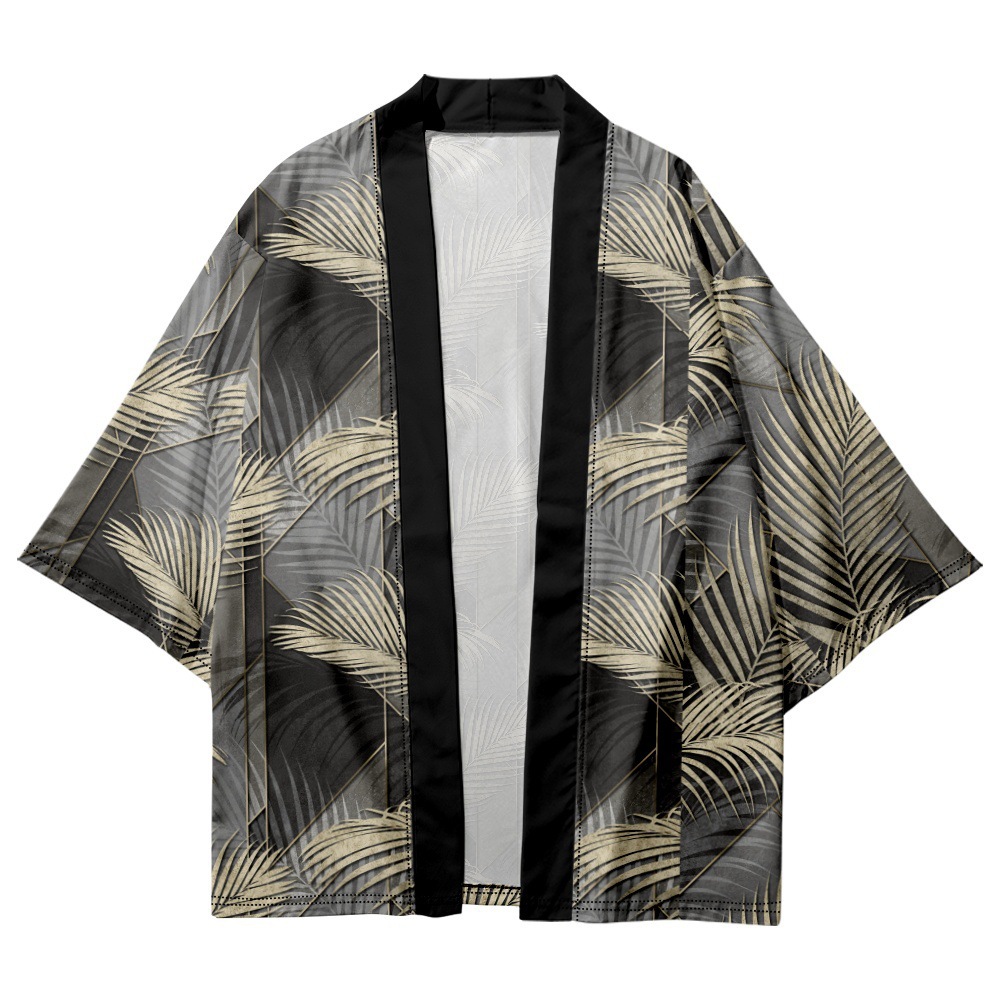 2023夏の着物クロスボーダーイラストプリント七分シャツ道着カーディガンゆるい男羽织