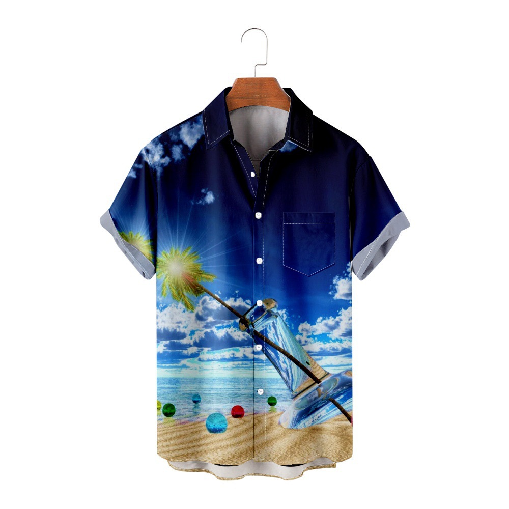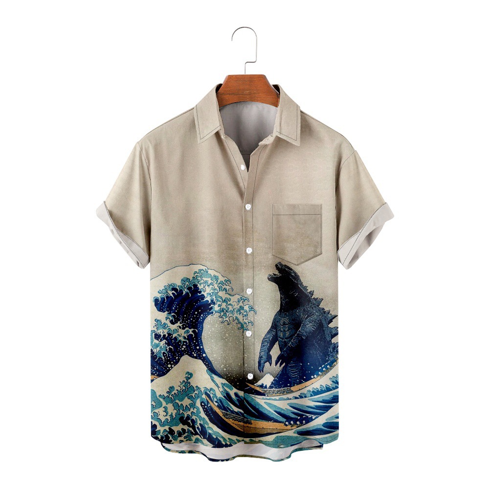 2023新作クリエイティブ要素3dデジタルプリントトレンドゆるい半袖ポケットシャツ男性大きいサイズ