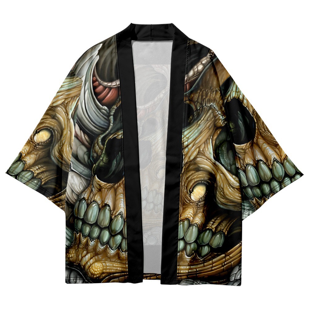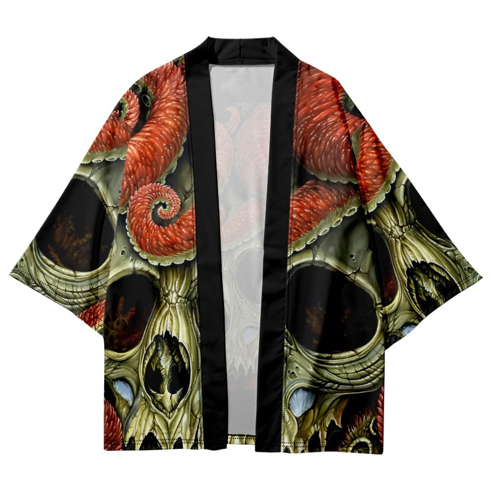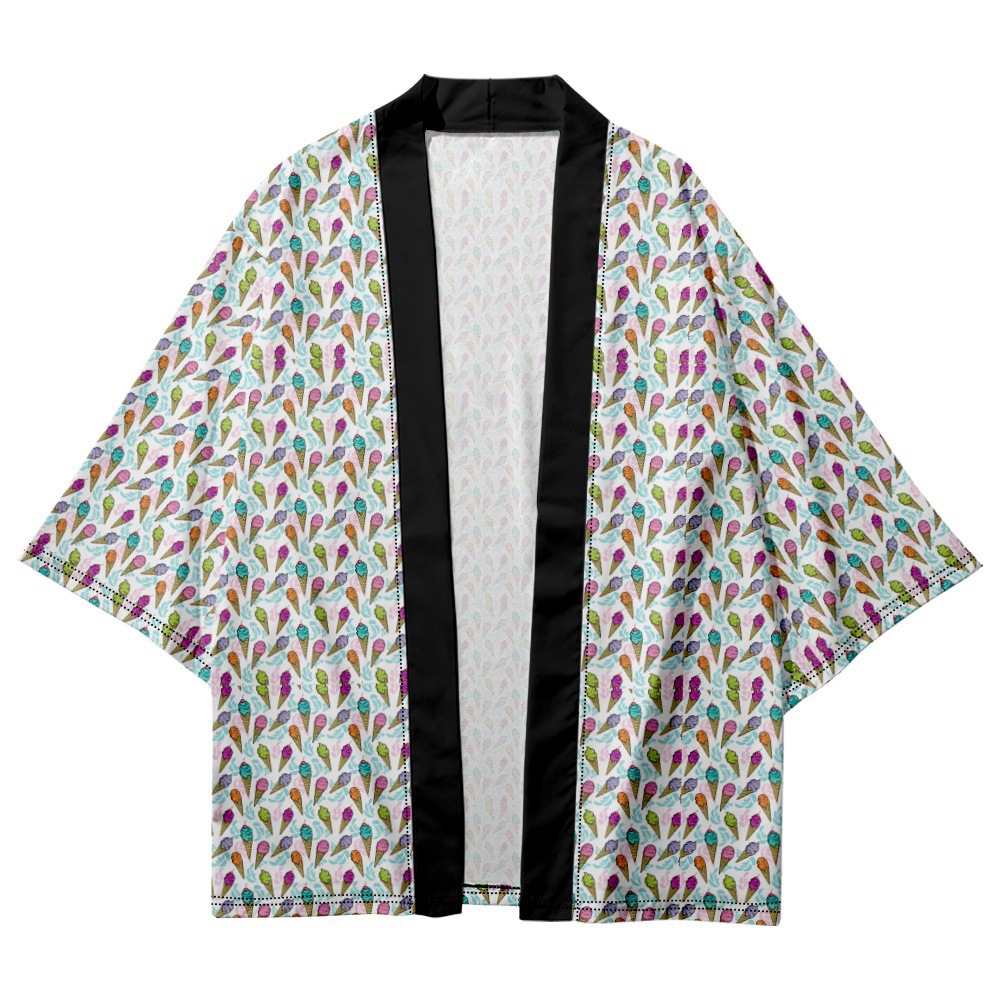 2023夏の着物国境を越えたイラスト3dプリント7分シャツ道衿カーディガンゆるい男