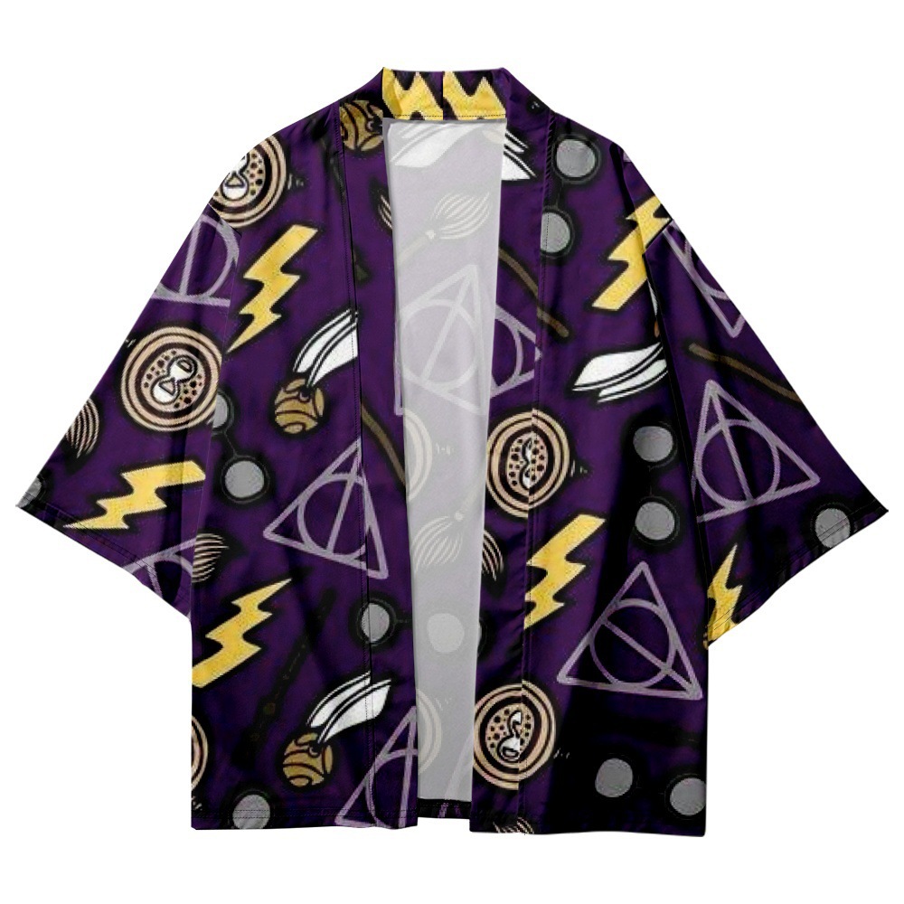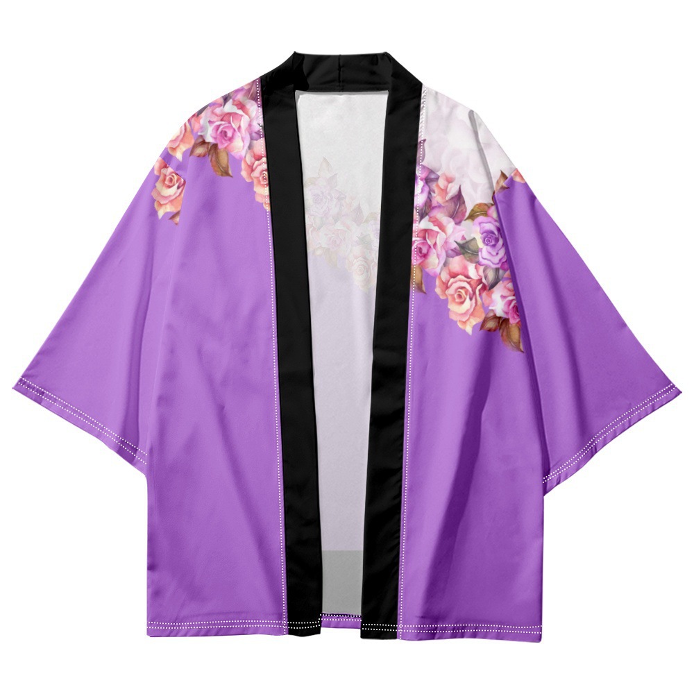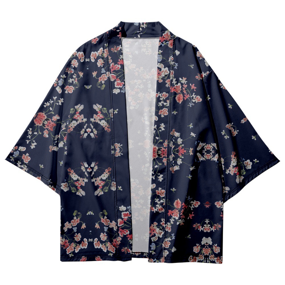 2023夏の着物越境ハロウィンプリント七分シャツ道着カーディガンゆるい男羽织