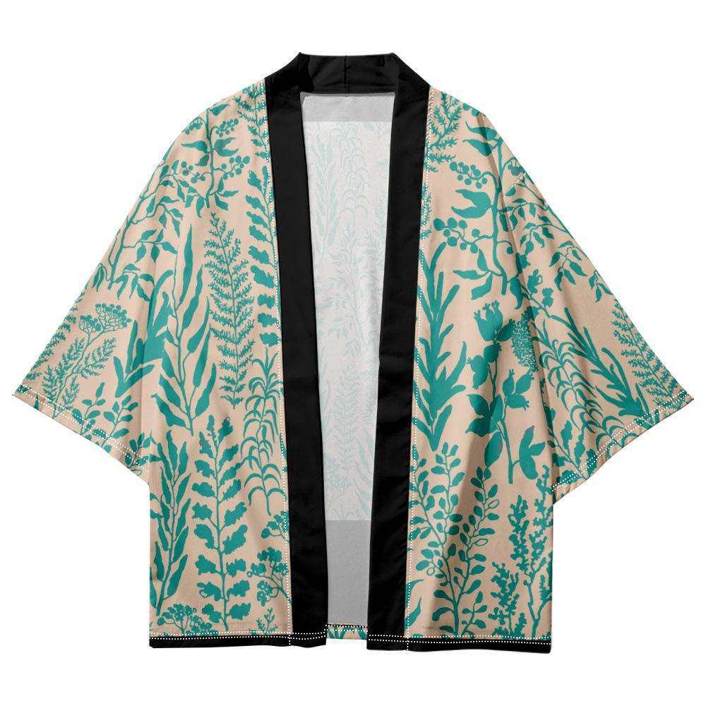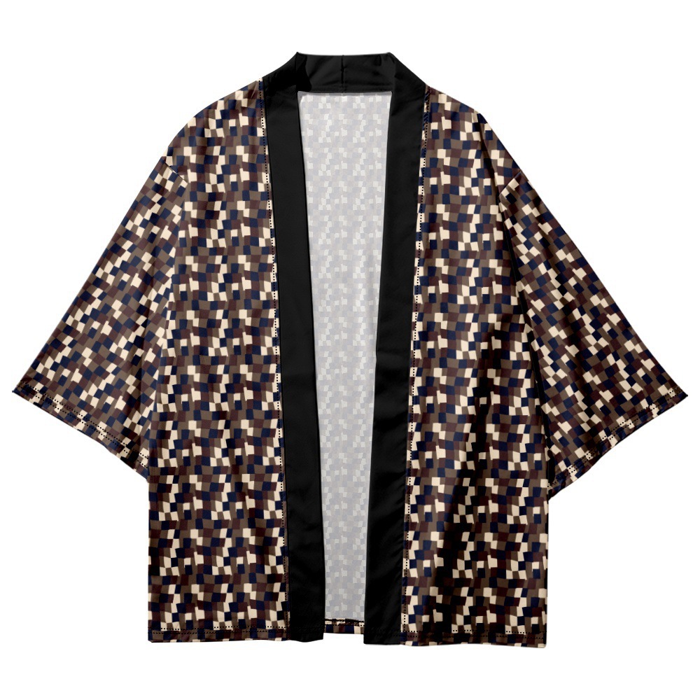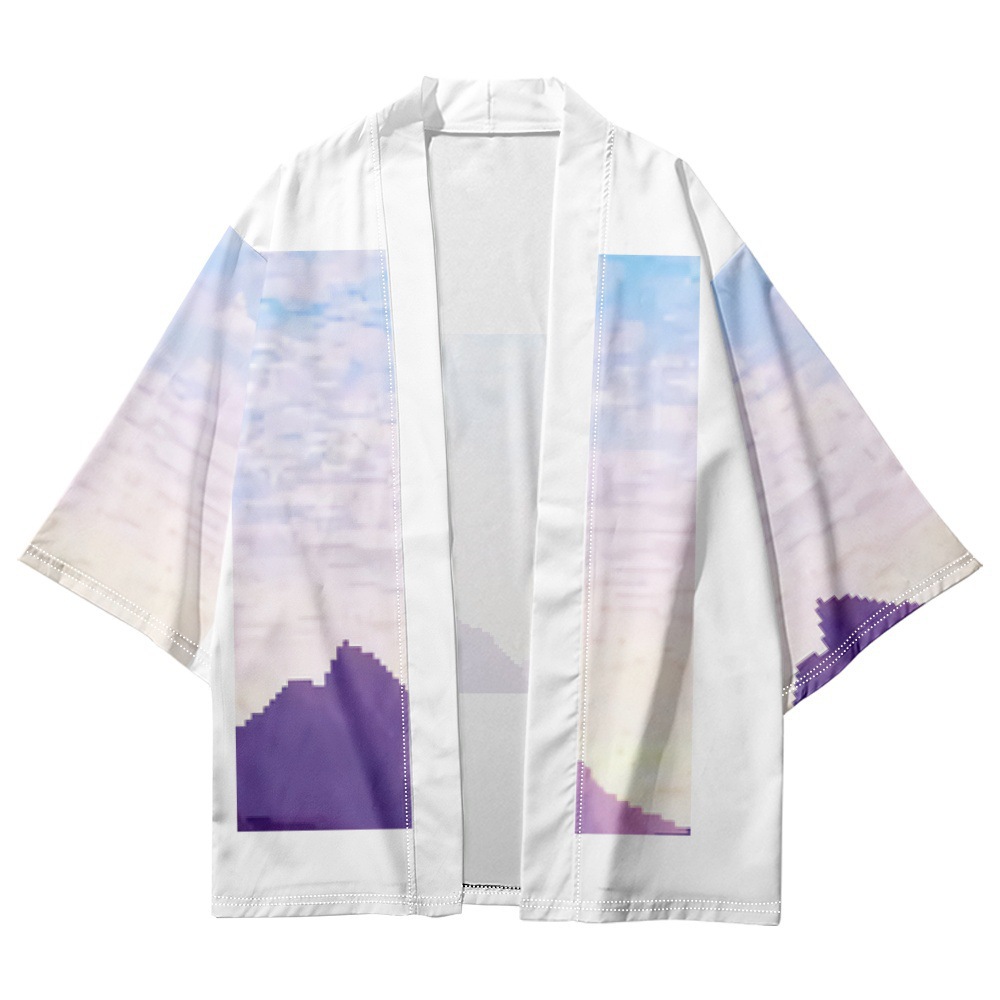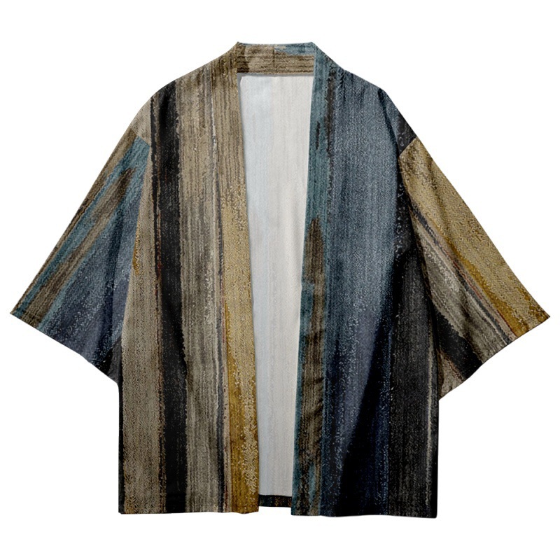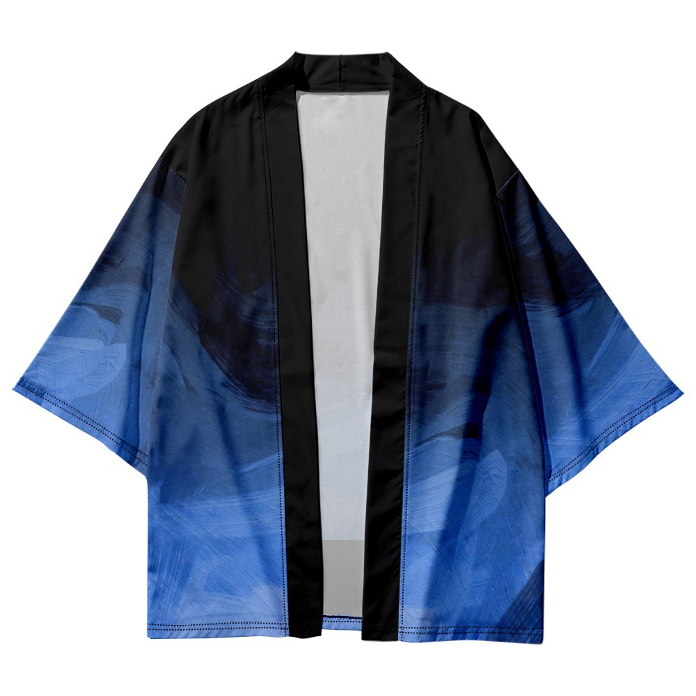 2023夏の着物クロスボーダーイラストプリント七分シャツ道着カーディガンゆるい男羽织