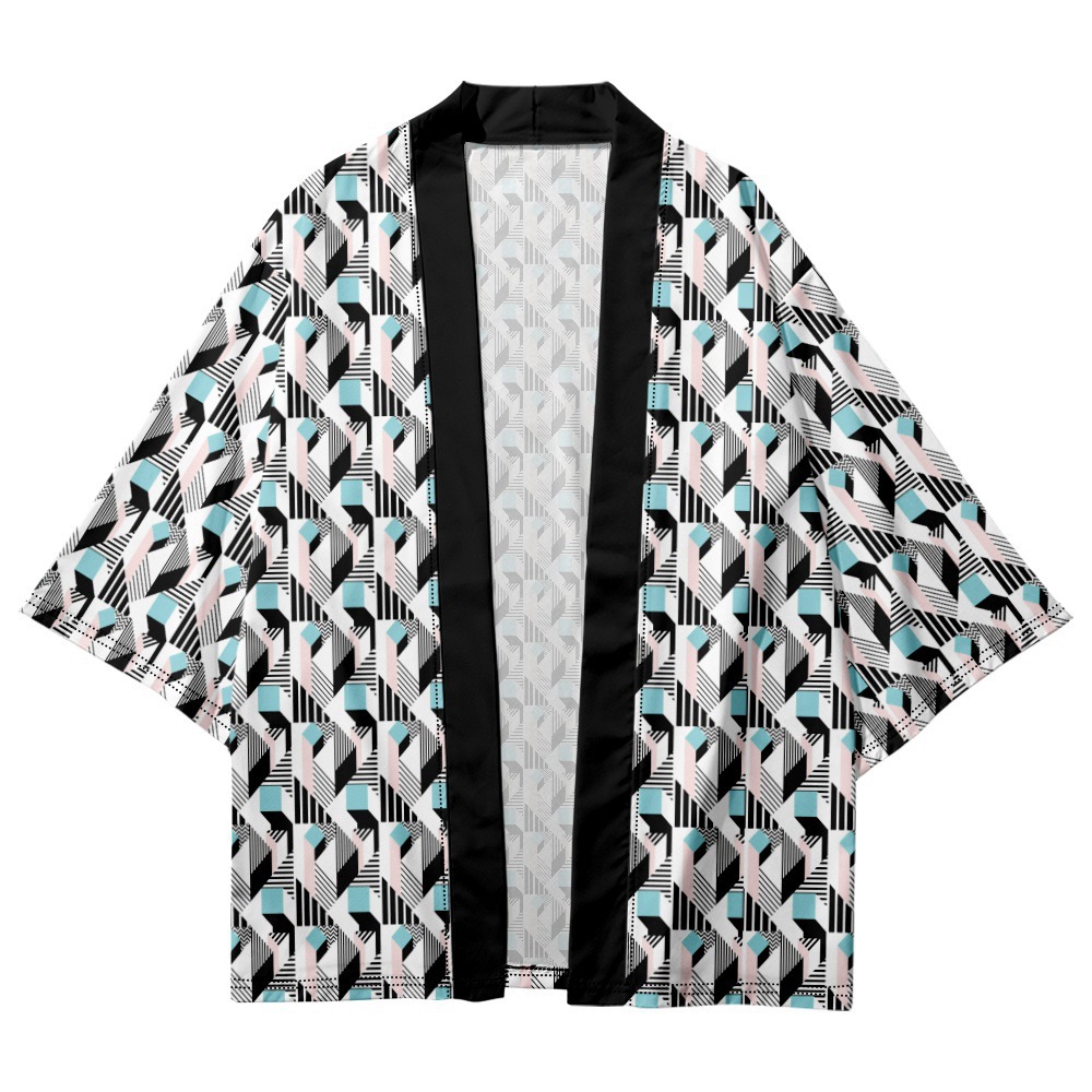 2023夏の着物国境を越えたイラスト3dプリント7分シャツ道衿カーディガンゆるい男